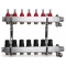 Розподільчі гребінки Tervix з нержавіючої сталі AISI 304 на 1’’ з витратомірами - регуляторами, ковпачками - регуляторами, краном Маєвського, зливним краном та виходами для контурів з кріпленнями 16*2 (євроконус) можуть бути від 2 до 12 контурів. Гребінки можуть використовуватися в трубопроводах систем питного і господарського холодного і гарячого водопостачання, опалення, стисненого повітря, а також на технологічних трубопроводах, що транспортують рідини, неагресивні до матеріалів гребінки. Гребінки призначені для розподілу потоку середовища окремим споживачам системи. Розподільчі гребінки Tervix призначені для використання в системах «Тепла підлога». За допомогою витратомірів легко встановити розрахункову витрату теплоносія через певний контур теплої підлоги.