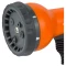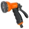 Пістолет-розпилювач 7-ми режимний (ABS+TPR) FLORA (5011494) призначений для поливу газонів, клумб, городів і для очищення від бруду садового інвентарю. Подачу води кріпиться важеля в задній частині рукоятки пістолета. Замикається важіль за допомогою відкидної металевої скоби. Плавне регулювання потоку води створюється обертанням пластикового барильця. Обертання головки за годинниковою, або проти годинниковій стрілці встановлює необхідний режим розпилення.