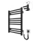 Електрична рушникосушарка HF Derby 570x430. Працює за технологією сухого ТЕНу. Обладнана вбудованим таймер-регулятором і конектором для підключення до живлення з будь-якого боку. Оснащена комплектом для прихованого підключення. Модель має 10 ребер з круглої труби та стійки з квадратного профілю. Матеріал - чорна сталь з антикорозійною обробкою. Варіанти покриття: чорний мат або білий мат. Температурні режими таймер-регулятора: 40°С, 45°С, 50°С. Час роботи: 3, 6 годин або постійний нагрів. Потужність 90 Вт. Гарантія - 3 роки.