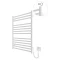 Електрична рушникосушарка HF Greenwich 770х530. Працює за технологією сухого ТЕНу. Обладнана вбудованим таймер-регулятором і конектором для підключення до живлення з будь-якого боку. Оснащена комплектом для прихованого підключення. Модель має 14 ребро з круглої труби та стійки з круглої труби. Матеріал - чорна сталь з антикорозійною обробкою. Варіанти покриття: чорний мат або білий мат. Температурні режими таймер-регулятора: 40°С, 45°С, 50°С. Час роботи: 3, 6 годин або постійний нагрів. Потужність 145 Вт. Гарантія - 3 роки.