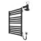 Електрична рушникосушарка HF Oxford 770х530. Працює за технологією сухого ТЕНу. Обладнана вбудованим таймер-регулятором і конектором для підключення до живлення з будь-якого боку. Оснащена комплектом для прихованого підключення. Модель має 12 ребр з прямокутногої труби та стійки з квадратної труби. Матеріал - чорна сталь з антикорозійною обробкою(фосфотація). Варіанти покриття: чорний мат або білий мат. Температурні режими таймер-регулятора: 40°С, 45°С, 50°С. Час роботи: 3, 6 годин або постійний нагрів. Потужність 130 Вт. Гарантія - 3 роки.