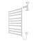 Електрична рушникосушарка HF York 770х530. Працює за технологією сухого ТЕНу. Обладнана вбудованим таймер-регулятором і конектором для підключення до живлення з будь-якого боку. Оснащена комплектом для прихованого підключення. Модель має 10 ребр з прямокутногої труби та стійки з круглої труби. Матеріал - чорна сталь з антикорозійною обробкою. Варіанти покриття: чорний мат або білий мат. Температурні режими таймер-регулятора: 40°С, 45°С, 50°С. Час роботи: 3, 6 годин або постійний нагрів. Потужність 130 Вт. Гарантія - 3 роки.