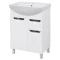 Тумба Лора з умивальником Лотос/RUNA 60 біла, врізні ручки V.M. (000001198) Лора – серія, що поєднує комфорт і класичний дизайн. Тумба у своїй конструкції має ящик і дві дверцята оснащені якісним механізмом плавного закривання. Внутрішній простір розділений полицею, що дозволяє зберігати додаткові речі у ванній кімнаті. Корпус тумби виготовлений із ламінованого ДСП 16 мм. Фасад – МДФ двостороннього ламінування 16 мм. Колір білий. Комплектується модель ніжками із алюмінію. Тумба поставляється у зібраному вигляді. Характеристики: Колір фасаду: Білий Ширина тумби: 70 см Ширина модуля: ЛДСП/МДФ Умивальник: Штучний камінь Відкриття дверей: Зліва, зправа Тип монтажу: Підлоговий