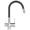 Керування - Одноважільний Тип виливу - Поворотний Фільтрація води - До водопроводу Колір - Чорний Матеріал - Латунь Діаметр під'єднання шлангів - 3/8" Шланги під'єднання - Входять до комплекту постачання Шланги - На різьбі