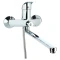 Змішувач SD Ø40 для ванни гусак прямий 350мм дивертор вбудований картріджний TAU (SD-2C243C) Мінімальний тиск в системі водопостачання: 0.5 бар Максимальний тиск в системі водопостачання: 10 бар Водневий показник води (pH): 6.5–8.5 Загальна мінералізація води: не більше 1500 г/м³ Тільки для чистої води без домішок, що містять абразиви (пісок, глину, вапно тощо) Модель SD-2C243C - це одноважільний змішувач для ванни з душем із зігнутим корпусом і рукояткою такої ж форми. Вилив довгий, поворотний, дивертор вбудований картріджний. Шланг для душа з нержавіючої сталі довжиною 150 см, а лійка і утримувач із спеціального міцного пластику. Переваги: латунний корпус забезпечує тривалу експлуатацію; різні режими подачі води з лійки підвищують комфорт прийняття душу; важільним механізм забезпечує просте управління і перемикання; хромонікелевим покриття захищає виріб від корозії. Кріплення змішувача здійснюється за допомогою ексцентриків. Гарантійний термін - 12 місяців
